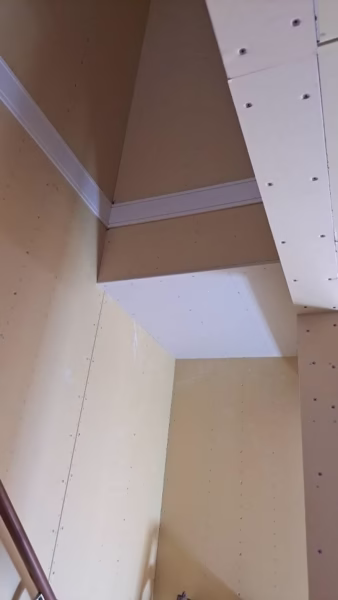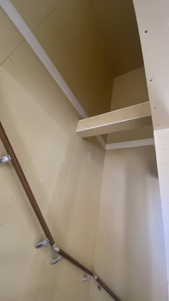 突貫で張った天井と壁は見るからに雑ですが、クロスで仕上げてしまえば分かりゃしねぇってか。