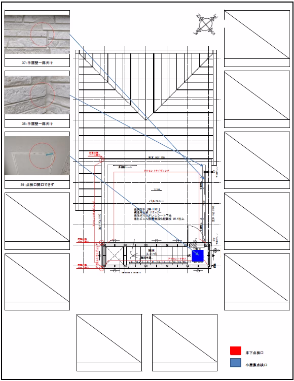 調査対象は建物の内外観仕上げおよび点検口から覗いて見える範囲の天井裏と床下のみ。