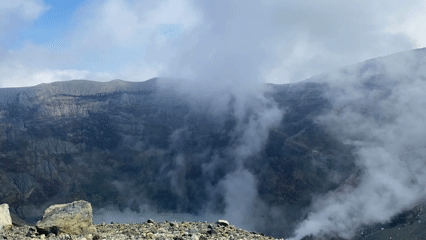 カルデラ湖から絶え間なく吹き上がる白煙に♬あぁ 生きてるって感じ♬を覚えます。