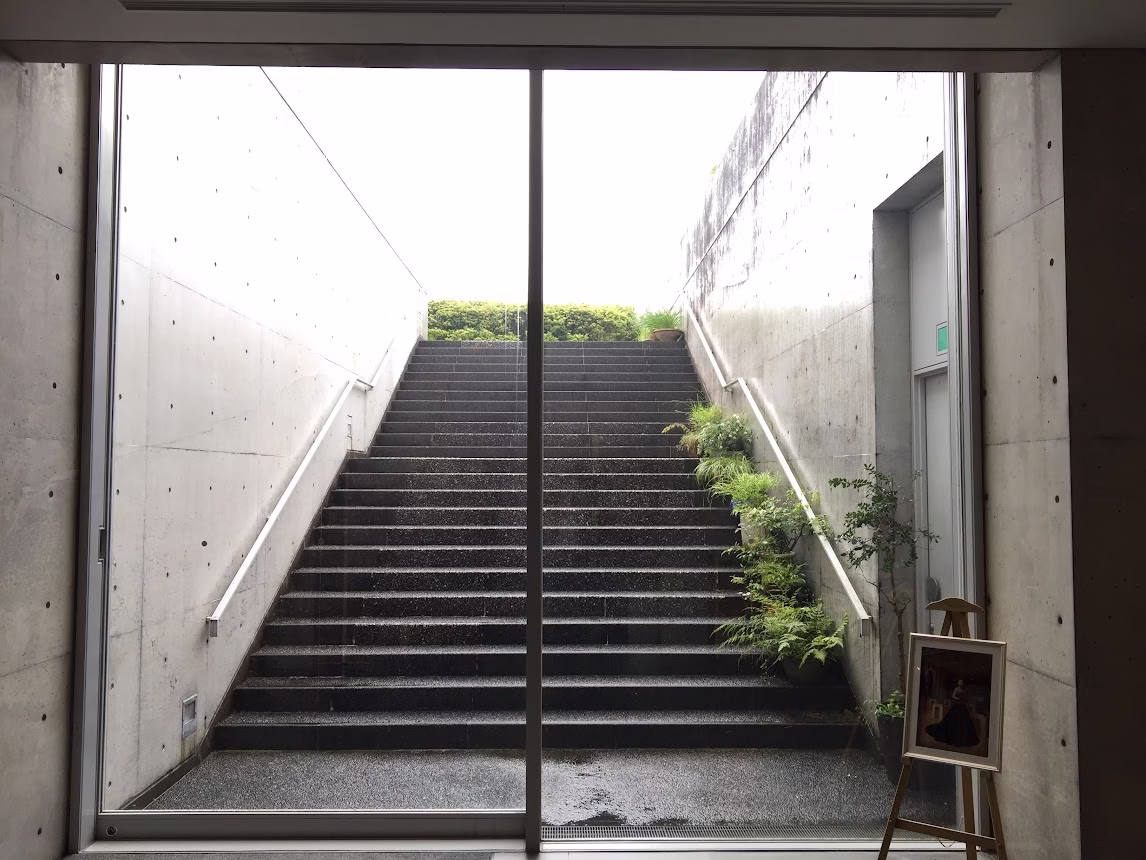 さすがに中はきれいなコンクリートの壁沿いに回りこみ、実用性のなさそうな階段を横目に展示室へ。