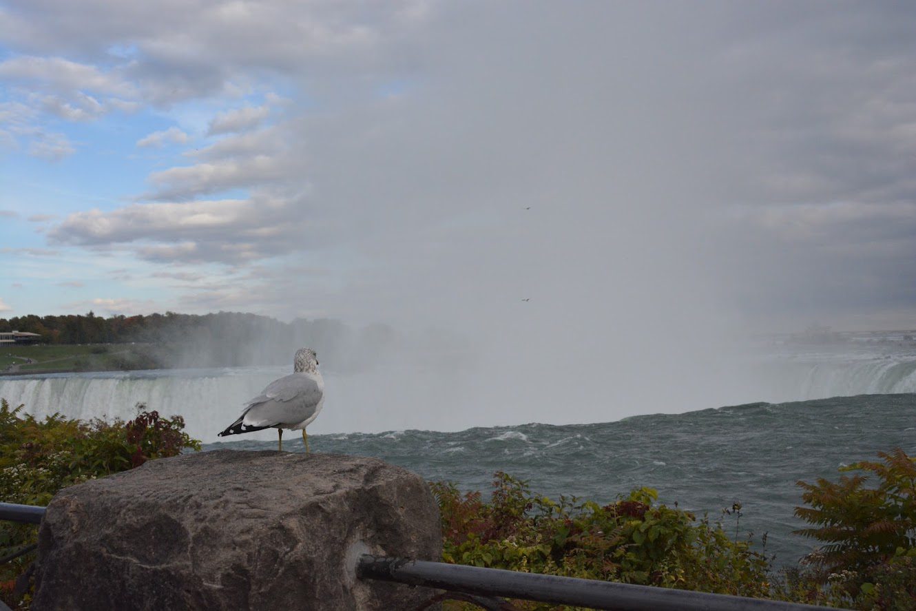 哀愁漂う鳥とともに怒涛の滝を悔し気に眺めます。