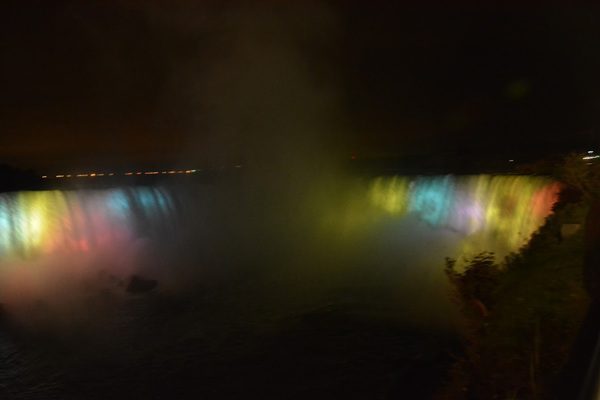 ライトアップされた夜の滝は幻想的な雰囲気に包まれています。滝音は相変わらず凄まじいですが。