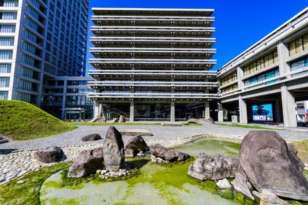 エントランス横の庭園は作庭家・重森三玲さん作品。