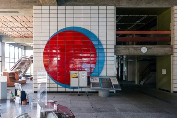 1階ロビーの陶板壁画は画家・猪熊弦一郎さん作品。